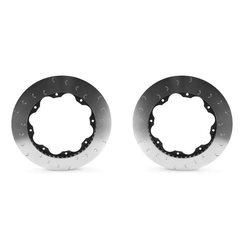 Alcon O.E. Replacement Front Rotor Rings for both DBA-R35 GT-R. (US 2007-2011) Includes both LEFT and RIGHT rotors along with Alcon Hardware. These will re-use the stock center hats with the provided Alcon hardware. 380mm x 34mm Crescent Grooved.