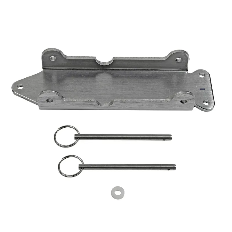 This mounting plate is built with 5052 aluminum for strength and light weight. With mil-spec (military specification) clear anodizing and stainless steel quick release pins it will provide years of maintenance free operation.