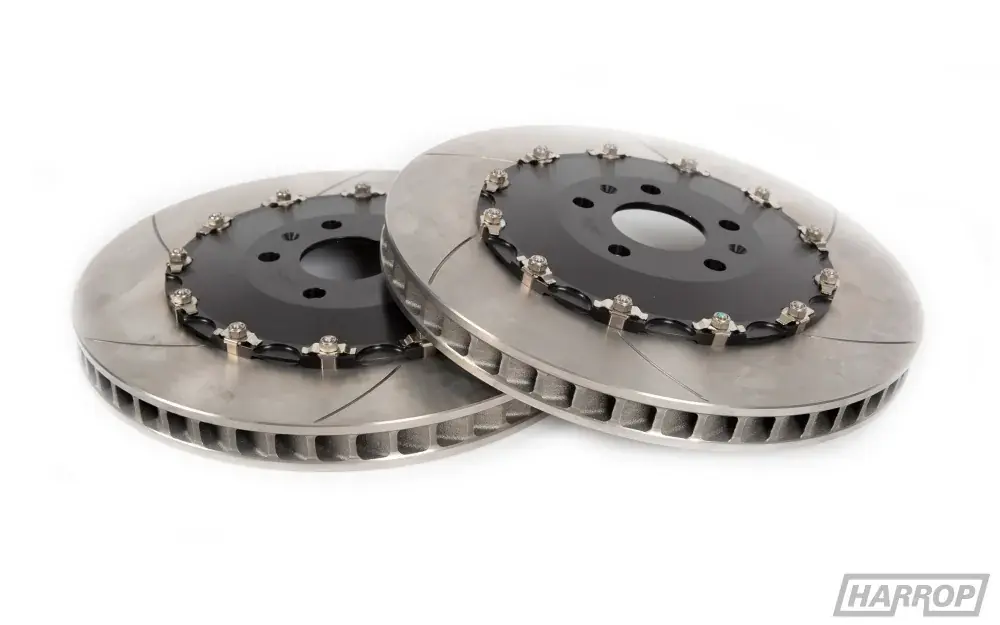 Developed on B7 RS4 and B8 S5 models with factory Brembo RS brakes, this larger slotted rotor uses a Harrop made rotor assembly incorporates a bobbin drive system and will satisfy the needs of serious street and track enthusiasts.
