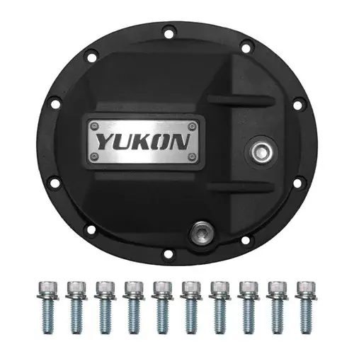 Yukon Hardcore Diff Covers are constructed from thick-walled, high-strength nodular steel to protect lockers, gears and axles from the most extreme hits in off road driving. They also increase the structural rigidity of the differential, reducing deflection under high-torque situations that can put severe loads on vital internal parts. Yukon Hardcore Diff Covers feature a durable powder coat finish and high strength steel fasteners for easy bolt-on installation. Its no secret that the underside of your rig can take a beating. Remember your diff! Its the lowest hanging fruit and very susceptible to damage crack or break it and youre done for the day. Upgrade to a Yukon Hardcore Diff Cover and enjoy more peace of mind on the trail.