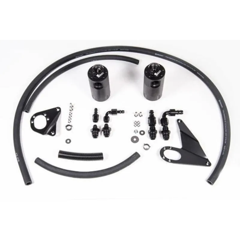Radium Engineering offers several completely independent oil catch can kits for the Evo X that are sold individually or together using the menu above. The first type do NOT vent to atmosphere (VTA), thus are emissions and track legal. Closed loop systems route clean filtered air back in through the engine to be burned
