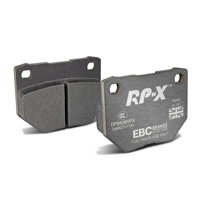 Compared to RP?1, RP?X has a 25% increase in friction coefficient across its working temperature range with a much more ‘positive’ initial bite. This characteristic potentially makes RP?X more suitable on heavy or inherently under?servoed vehicles. For light?medium weight vehicles, cars with non EBC Big Brake Kits fitted, or vehicles with no ABS, the less fierce nature of EBC Racing’s other track material RP?1 may be preferable.