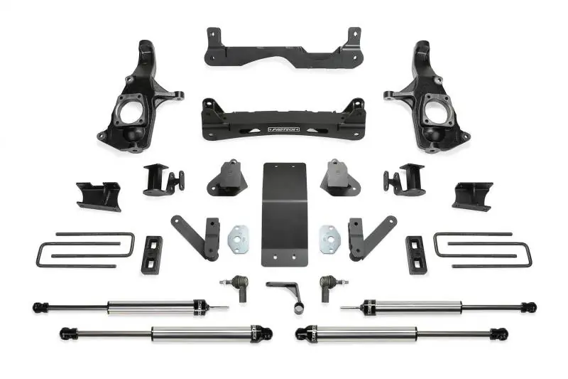 - Fabtechs new 4 crossmember systems utilize their proven heavy duty construction and design features for a robust suspension upgrade. The 4 system features high arched lower control arm crossmembers constructed of 1/4 thick steel for maximum strength. The Fabtech ductile iron steering knuckles retain the near stock track width keeping tires under the fender for a clean appearance. Rear lift is accomplished with a block and u bolt configuration.