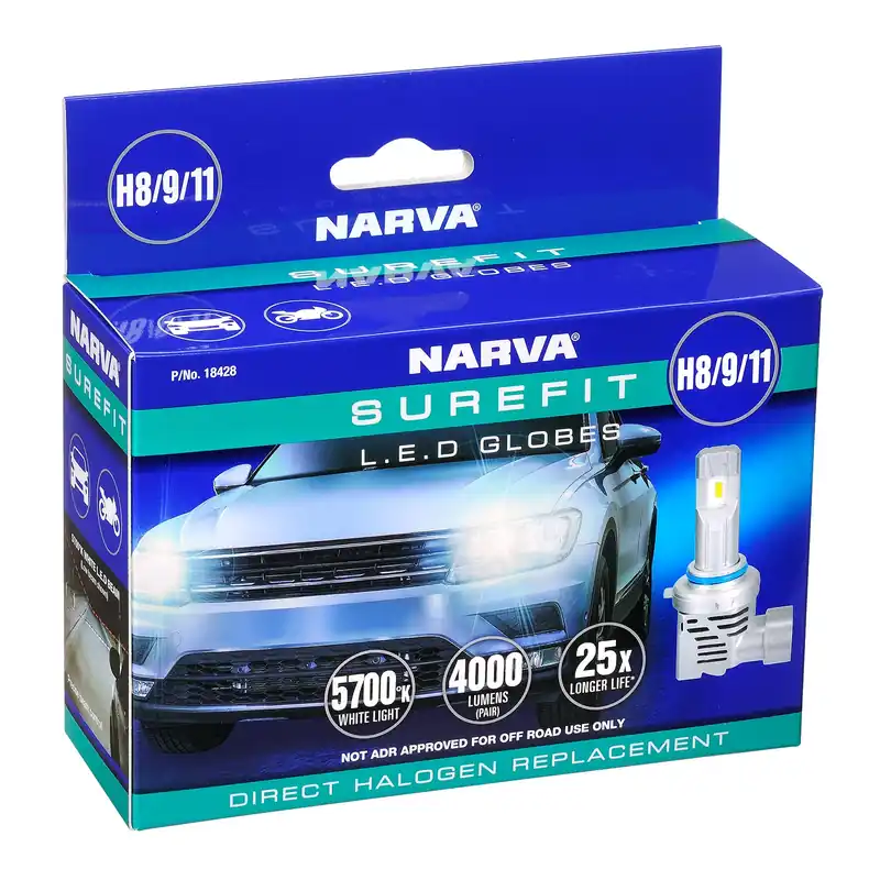 The new Surefit Globes offer superior range and colour to any standard halogen globe. Narva Surefit Globes are also cooled by an IP65 rated fan, that combined with low current draw Lumiled ZES L.E.Ds results in a headlight globe that lasts up to 25 times longer than its halogen counterparts.