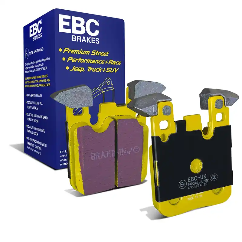 Yellowstuff has been the flagship pad by EBC for over a decade and gives instant brake response, great feel and modulations with silk-smooth noise free braking and was also improved in 2021 to be copper free and conform to all new legislations for the environment and our pads are fully shimmed chamfered and slotted.