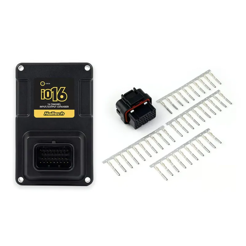 The Nexus IO16 is a Haltech CAN device that expands the functionality of a Haltech Nexus or Elite ECU by adding 16 user-configurable input and output channels, accessible through the Haltech CAN system. Plug and Pin set compatible with Haltech Nexus products that use the Key 2 / 34 position connector.