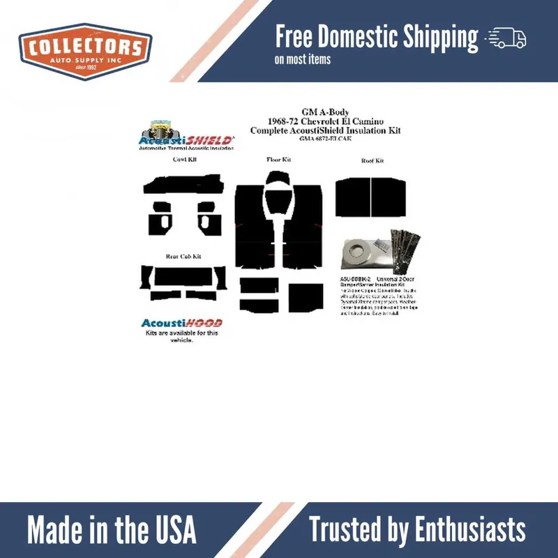 Insulation Sound Deadener Kit for 68-72 Chevy El Camino Acoustishield Complete Fresh Stock