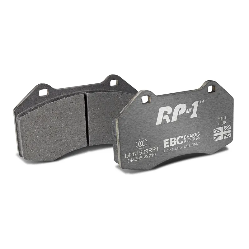 Compared to EBC Racing’s other track pad RP?X, RP?1 has a 25% reduction in friction coefficient across its working temperature range making RP?1 the more suitable choice for light?medium weight cars, cars with non EBC Big Brake Kits fitted, or vehicles with no ABS. For heavy or inherently under?servoed vehicles which suit a very aggressive pad, EBC Racing’s other track material RP?X may be preferable.
