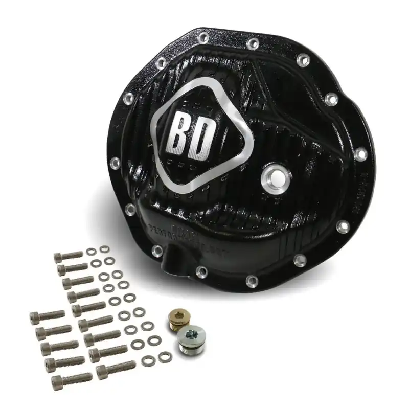 - Add a stylish look to your front end with a BD Front Diff cover. Made from cast aluminum, BD differential covers have both internal and external fins for extra cooling plus a sleek curved design. Comes with separate fill and drain ports with stainless steel plugs for easier servicing. Includes stainless steel Allen head cap bolts and magnetic drain plug to help capture suspended material in the oil. Designed to be compatible with aftermarket track bars.
