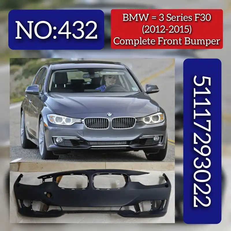 This Complete Front Bumper (Part No. 51117393022) is designed specifically for the BMW 3 Series F30 models produced between 2012 and 2015. Engineered to meet OEM standards, it ensures a precise fit and retains the vehicle’s original aesthetic and aerodynamic performance. Ideal for restoring the front end after damage, this bumper provides durable protection while maintaining the sleek lines characteristic of your BMW. Tag No.432 identifies the part for quick reference and compatibility verification.