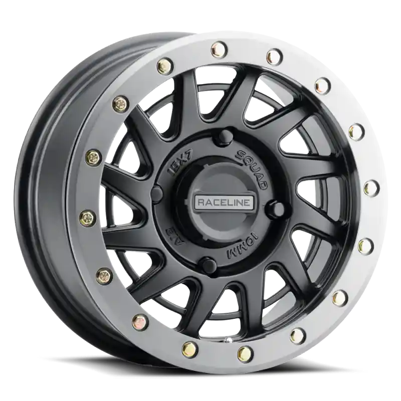 Raceline A12BG Squad 15x7in/4×137 BP/38mm Offset/110.18mm Bore – BLK & Gunmetal Ring Beadlock Wheel High Quality